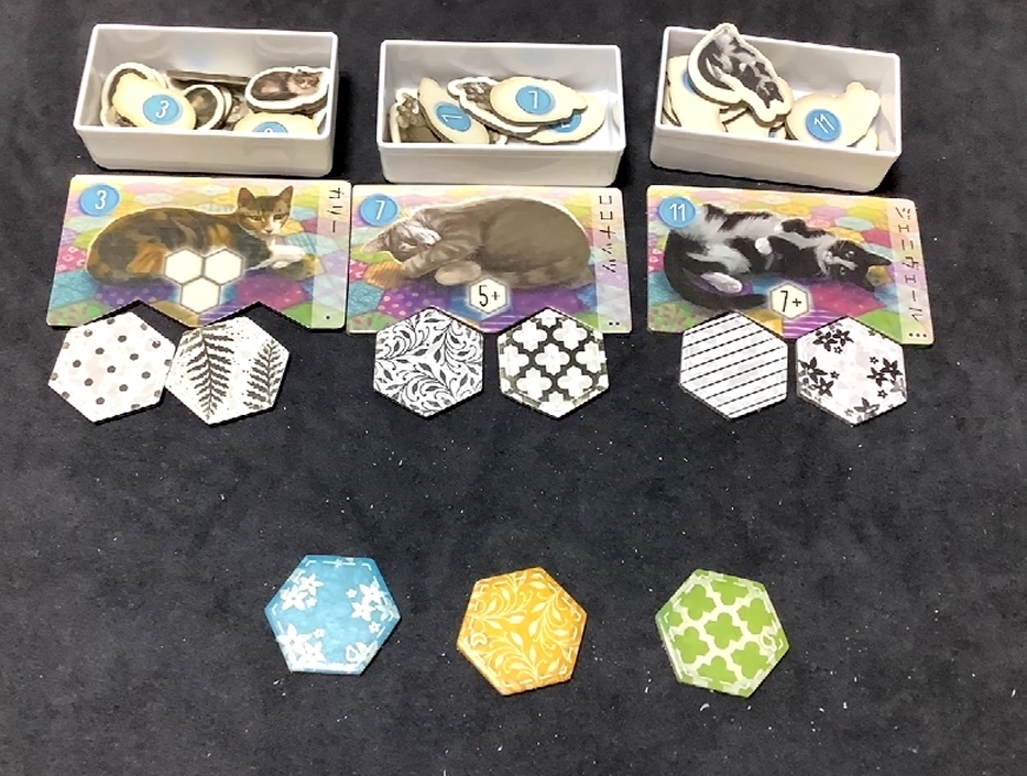 が揃ったので猫とボタンを置くことにします。こんな感じでゲーム終了時に得点となるのです。