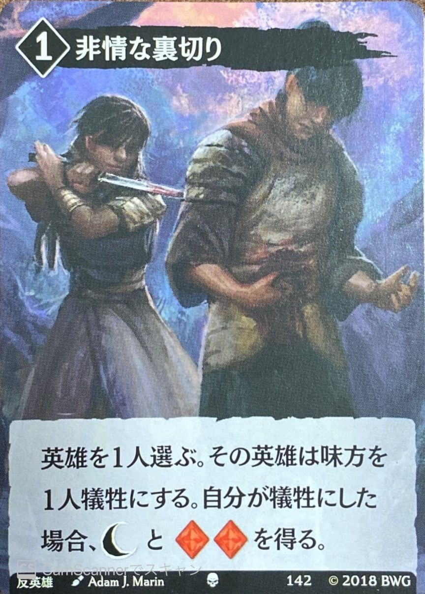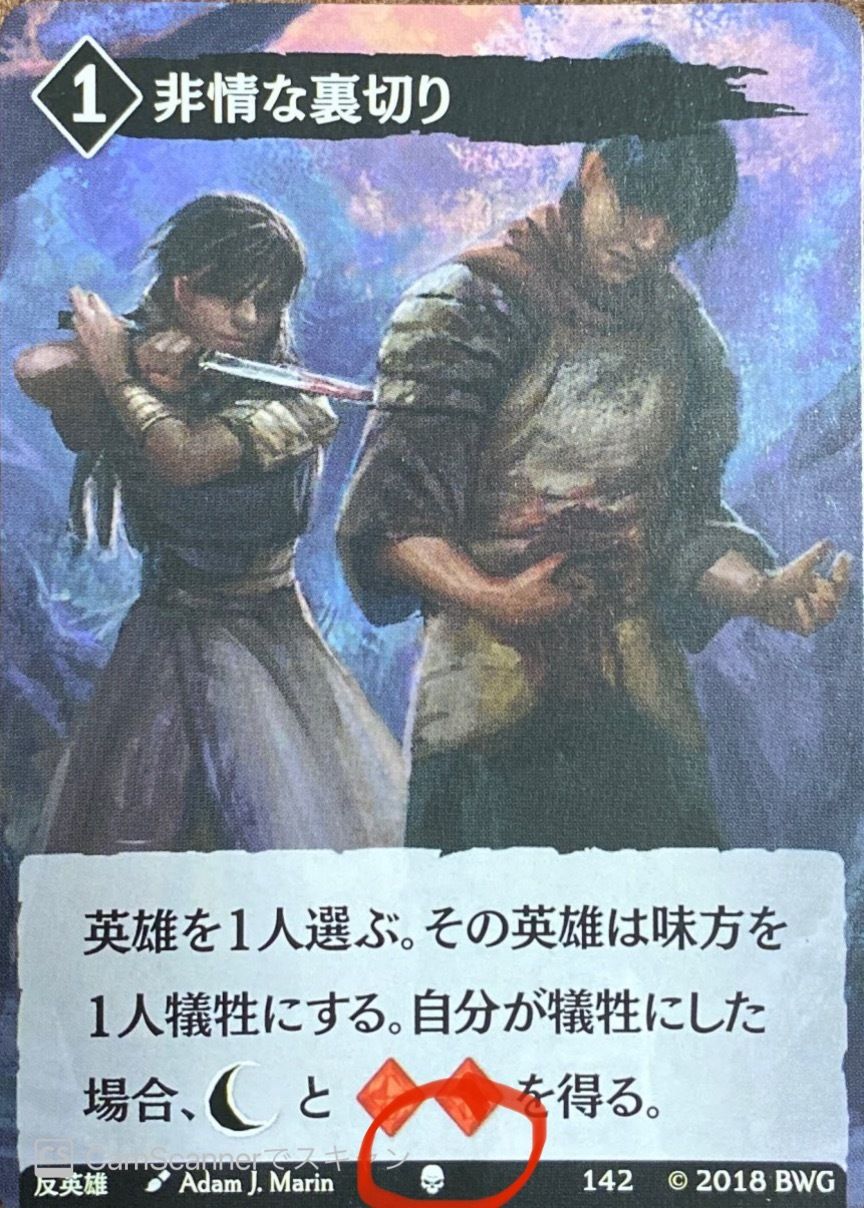 1人プレイ時の宿敵の武装について💀アイコンのある反英雄カードとありますが、この💀アイコンが嫌がらせのように印刷が小さいため注意が必要です。