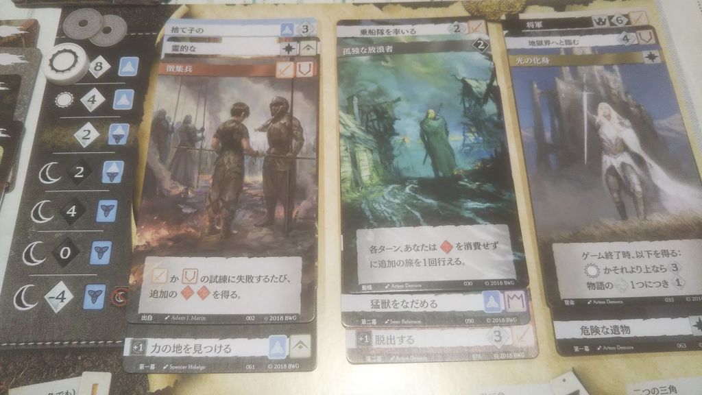 第一幕、第二幕、第三幕まで。一幕はそれぞれ3枚得たら次の幕の物語を紡ぐことができます。