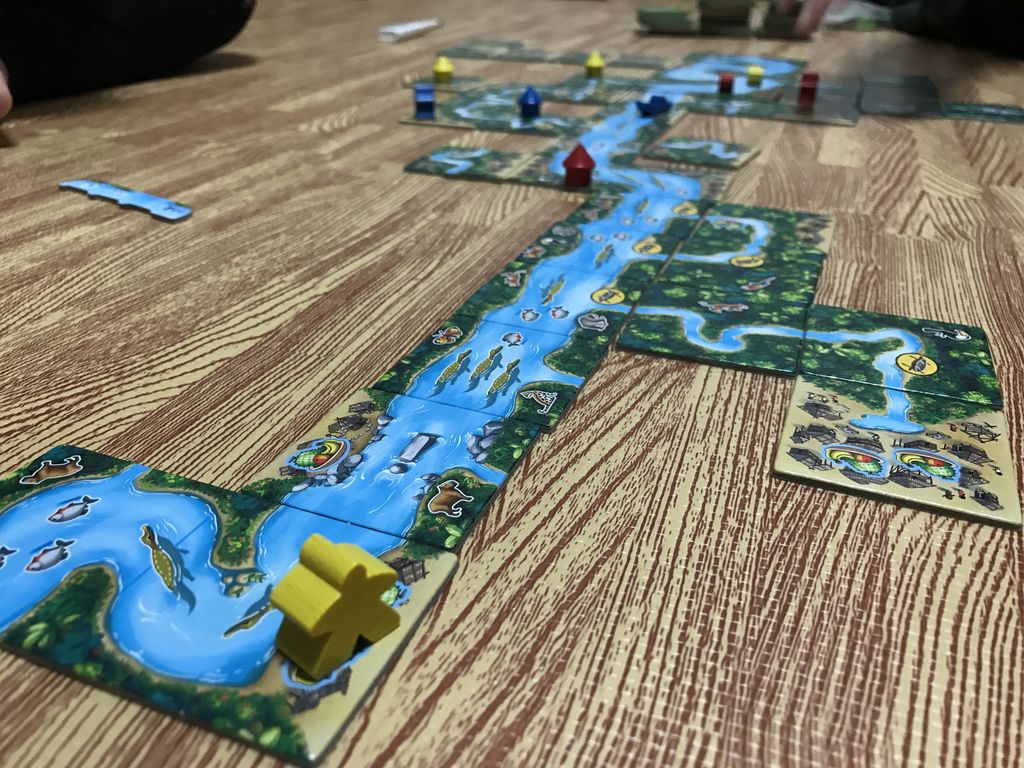 ただし、いつものミープル配置による得点獲得とは別に、ボートを進めるシステム(アマゾン川を下っていくことで得点をより多く得られるルール)が導入されたことで、タイルで得点を稼ぐか~ボートで得点を稼ぐかという2つの筋が用意されています。どちらかだけに集中…というプレイは厳しいので、プレイヤーは必然とバランスよくプレイする必要が出てきます。