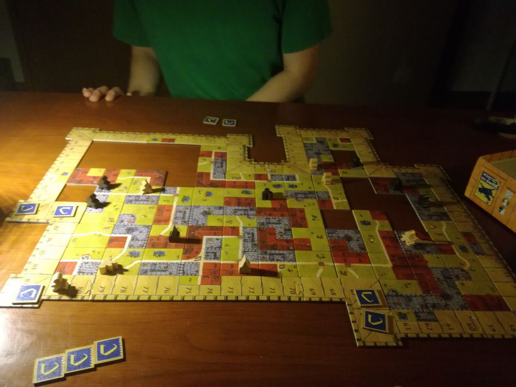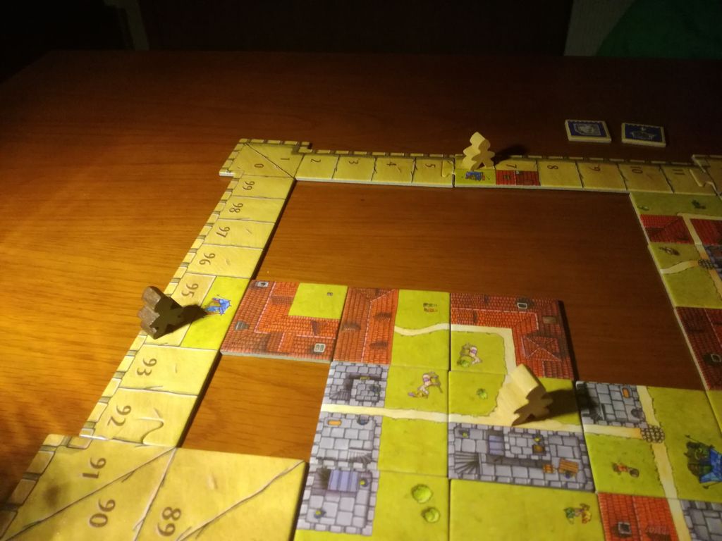 あと上の写真奥の道は完成忘れしています。この後それに気づいて、協議の結果特殊タイル2枚を目前に8点前進させました。どんだけミスしているんだ……。久々のプレイとはいえ、かなりミスってますね。すいません。