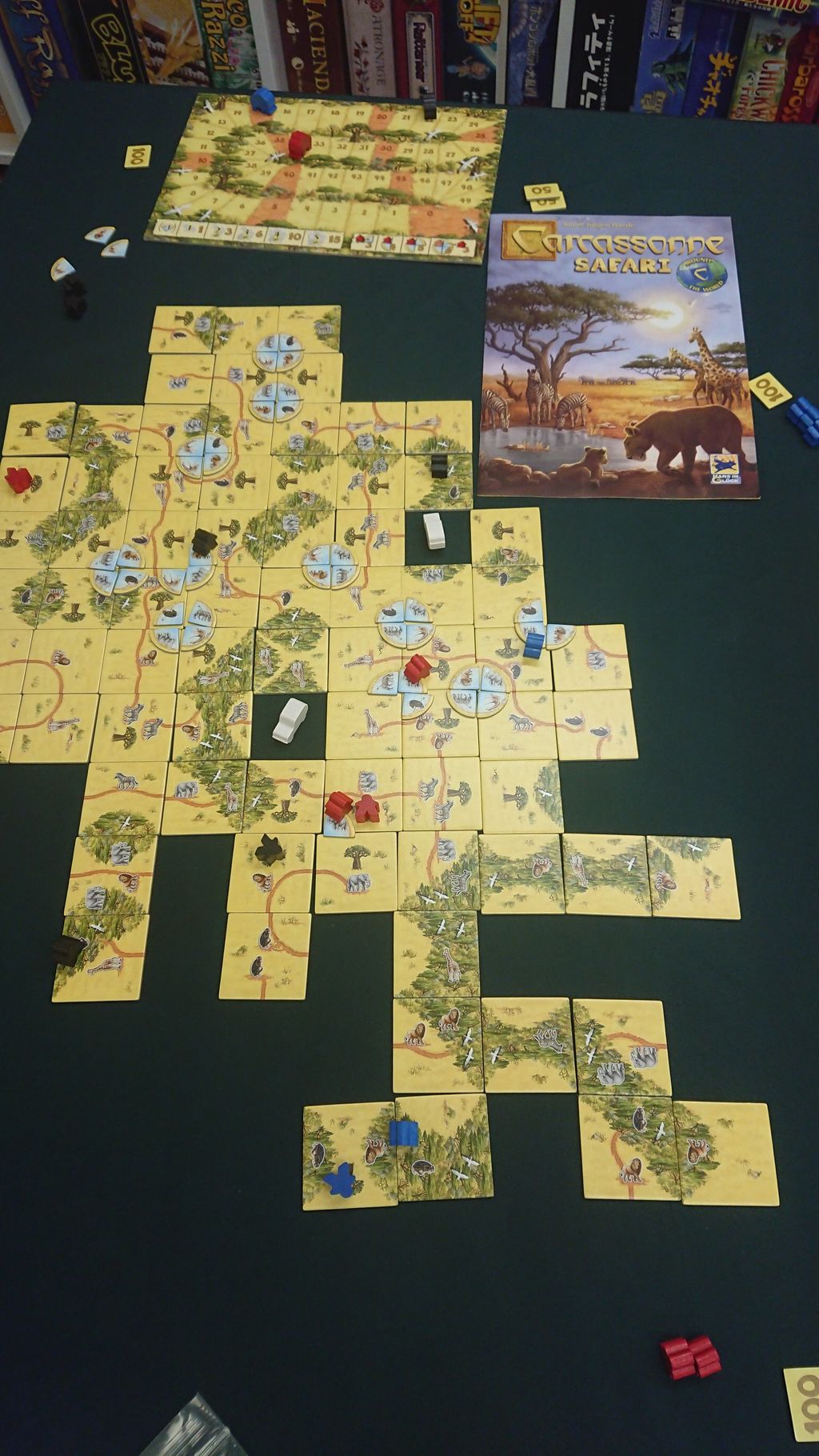 タイルを配置してミープルを置いて領地を広げて得点を競う「カルカソンヌ」、今作はアラウンド・ザ・ワールドシリーズのサファリ版。