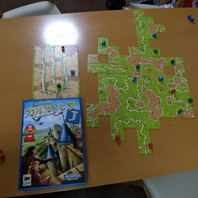 最後に、このゲームはダイズを降ることもなく、地形タイルとミープルを配置して勝利ポイントを得るだけですし、30分ぐらいでプレイが終わります。ちょっとした時間にでもプレイできるのが、良いと思います。世界大会もあるようですが、このレベルになると地形タイルの数などを全部覚えているらしいです。そこまでは無理ですが、ある程度地形タイルの枚数などを覚えていると、勝率が上がるかもしれません。私は、覚える気がないので、全然覚えていませんが、それでも十分楽しめます。