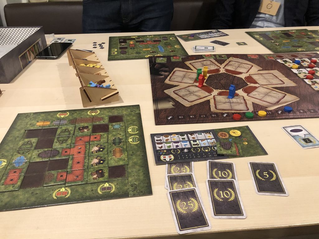ゲーム自体は、フェルト作品の中ではかなりシンプルですが、それはゲーマーズゲームの中でのことで、ボートゲーム初心者にはかなり厳しいゲームだと思います。私の初回プレイは、ルールの把握と各建物の効果を確認するだけで、気が付けばゲームが終わっていた感じでした。