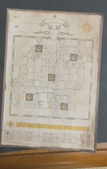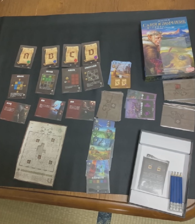 地図にも得点の要素がある条件もあり、例えば山を囲うように書き込めたら金貨をもらう。この金貨が得点源になったり、写真に並べてある技能を買ったりといろいろなことができる。