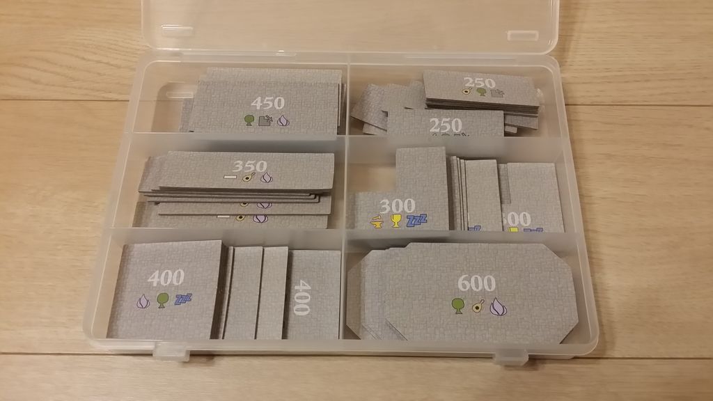 大量の部屋タイルが魅力のこのゲーム。しかし、それだけに準備や片付けが大変な面があります(特にソロプレイの時は……)。できるだけ準備・片づけを楽にするために私が実践している収納方法を紹介します。