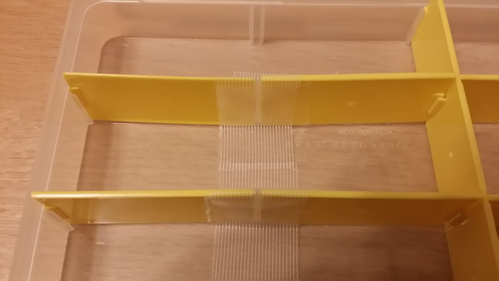 今回の使い方だと一部の仕切りが固定しきれないので、養生テープで補っています。