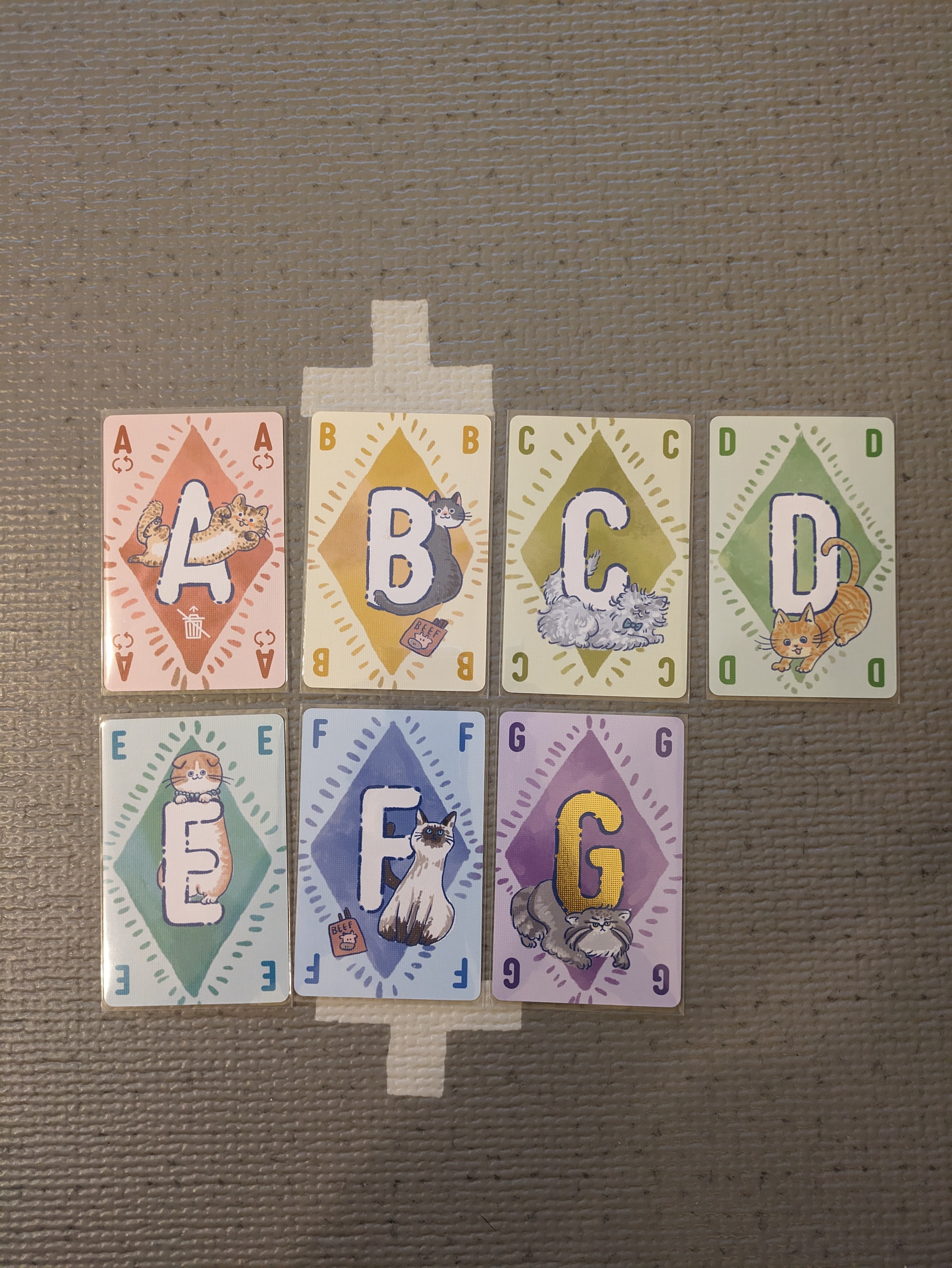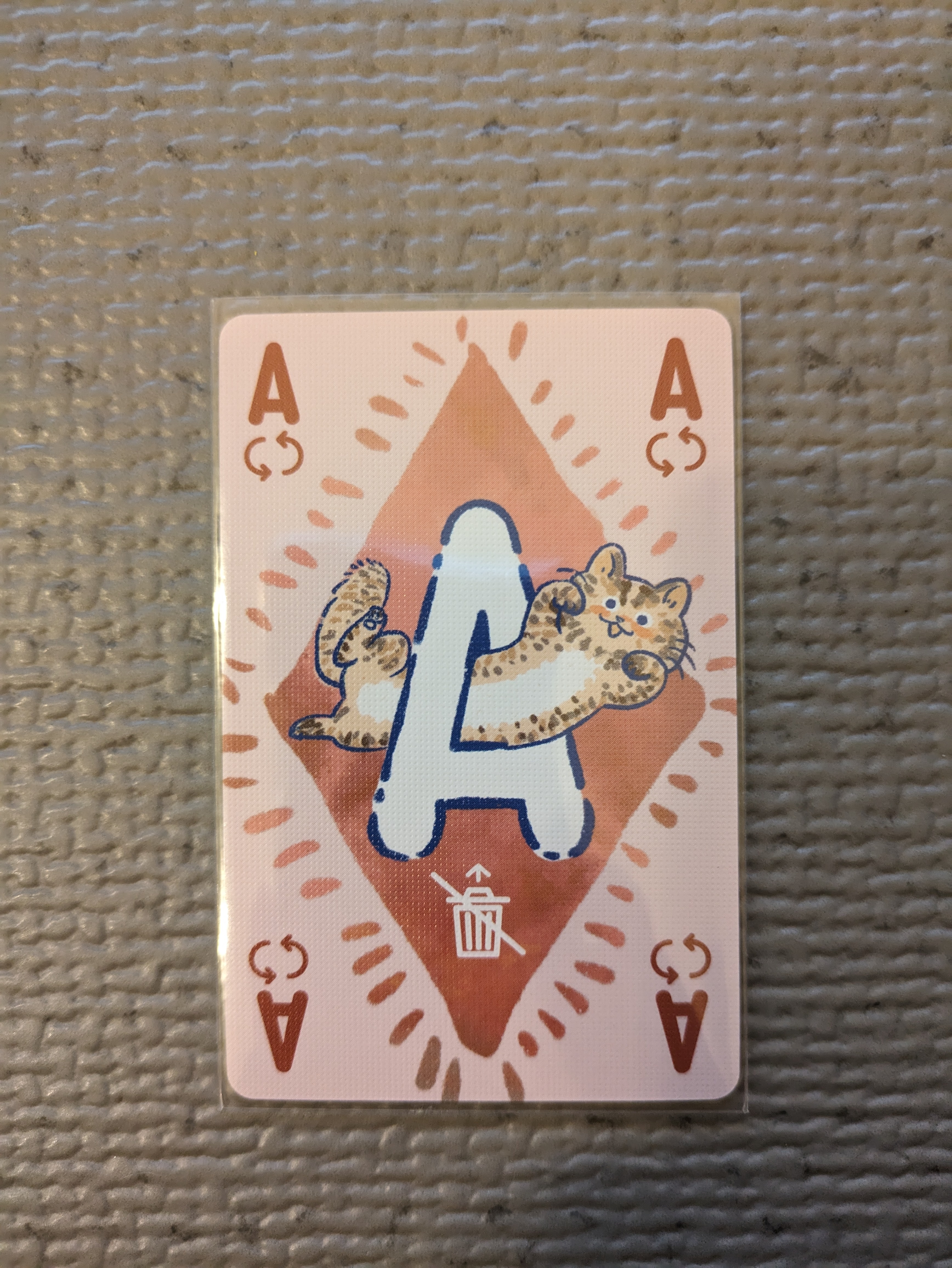 自分のターンになった瞬間に役の手札になってないと上がれないのがミソ。せっかく役が完成して、後は自分のターンになるのを待つだけの状況になっても、待っている間に誰かに『A』カードを捨てらると、役を崩して泣く泣くカードを渡さないといけないのは上手いと思った。