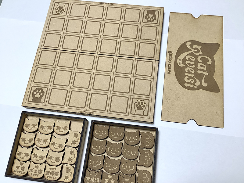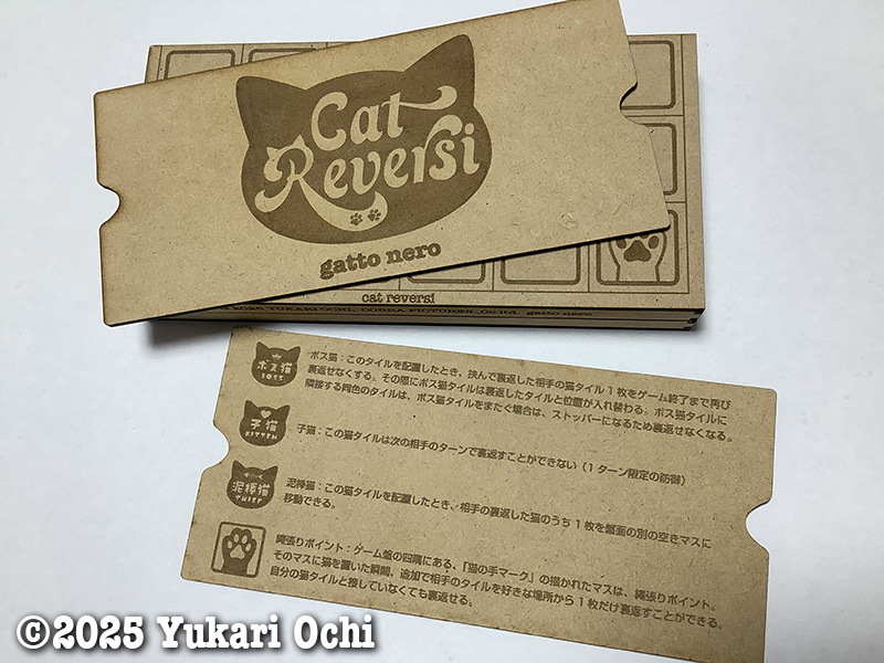 ●ボス猫:この猫タイルを配置したとき、挟んで裏返した相手の猫タイル1枚をゲーム終了まで再び裏返せなくする。その際にボス猫タイルは裏返したタイルと位置が入れ替わる。