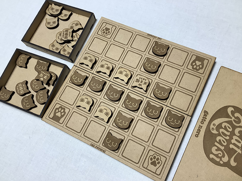 2:順番に自分の猫タイルを配置し、相手の猫タイルを挟んで裏返す。 挟めない場合はパス、1回休み。