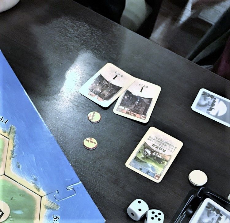 ・資源カードを渡して恩恵コマを手に入れるには、誰かに受け取ってもらわないといけません。自然とみんなフレンドリーに、優しくなります(元々のカタンの交渉ゲームなので、もちろん優しくなるのですが)。