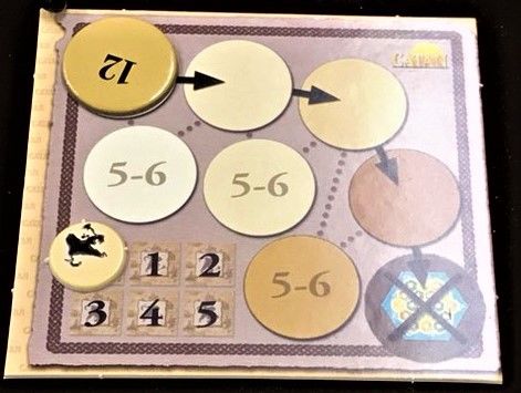 トラックを5まで進めた人は、手番後にダイスを2個振ります。