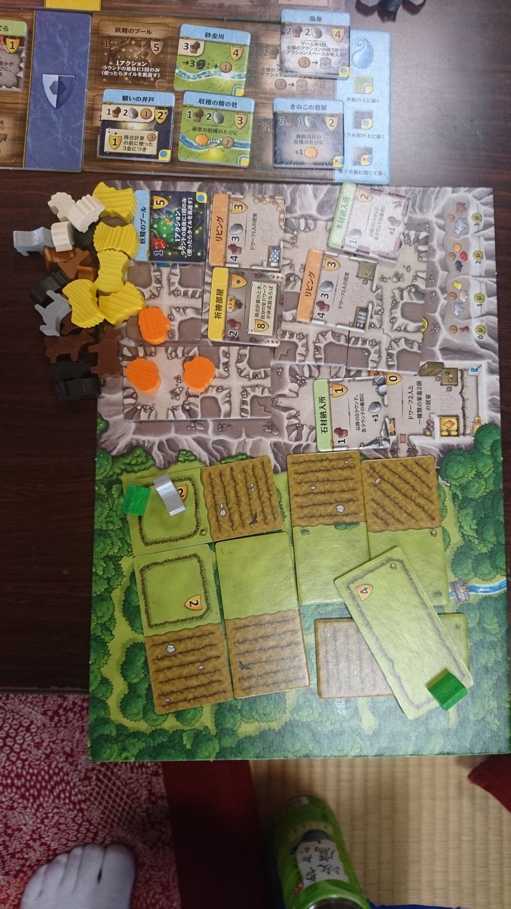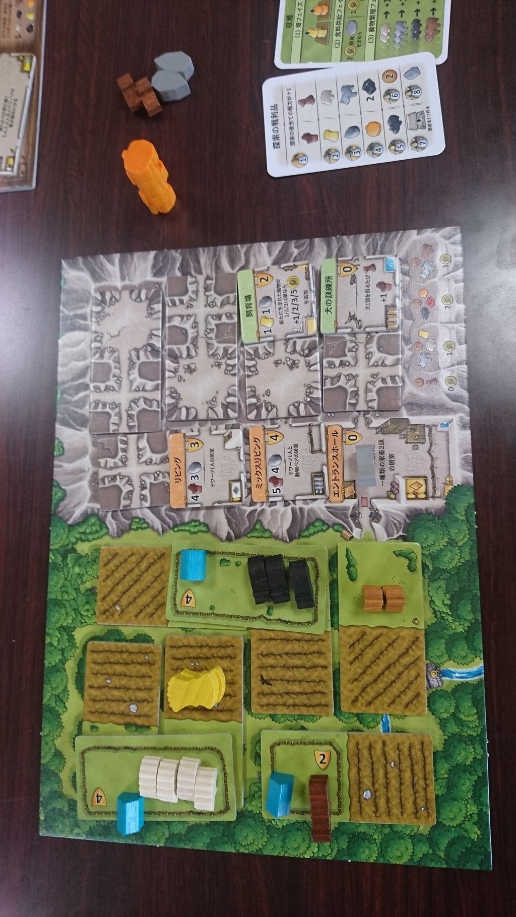 ネクロス:3回目のプレイ。部屋取り中心に頑張ったが食料のカツカツさがヤバかった。最終ラウンドで柵を増やしたり森を開拓したりと慌てた印象。