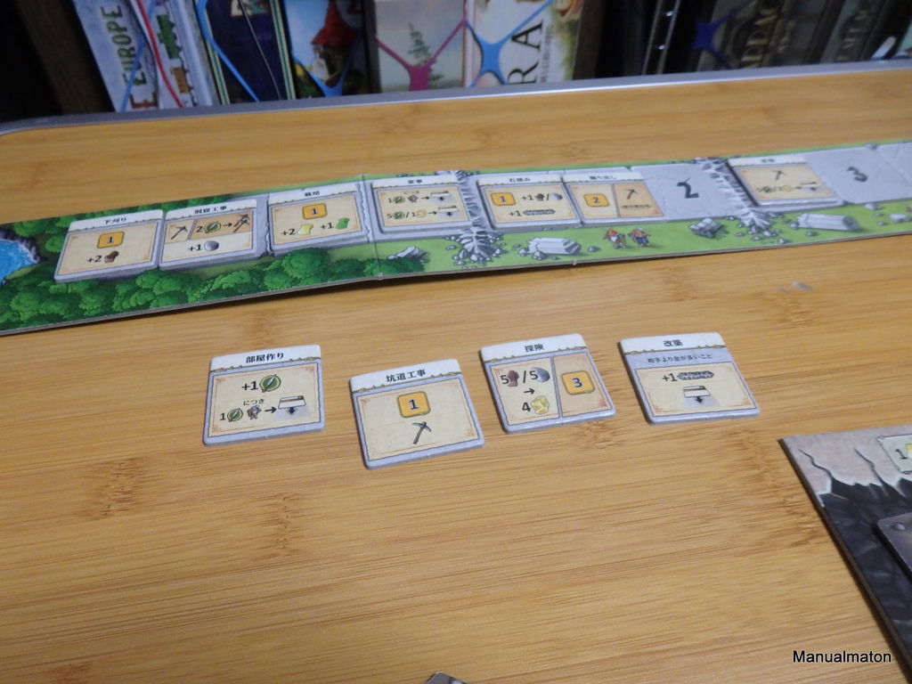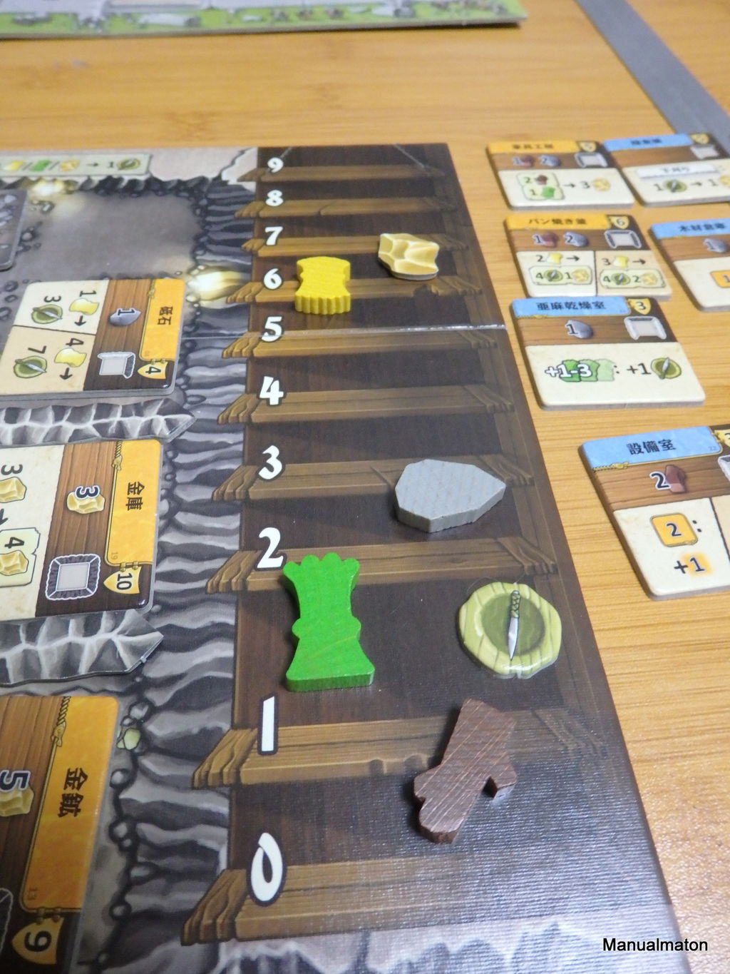 特に、『アルルの丘』なんかでもお馴染みのゲームボードと一体化されている「各資源の量を一目で把握/管理できるトラック」がお気に入り。