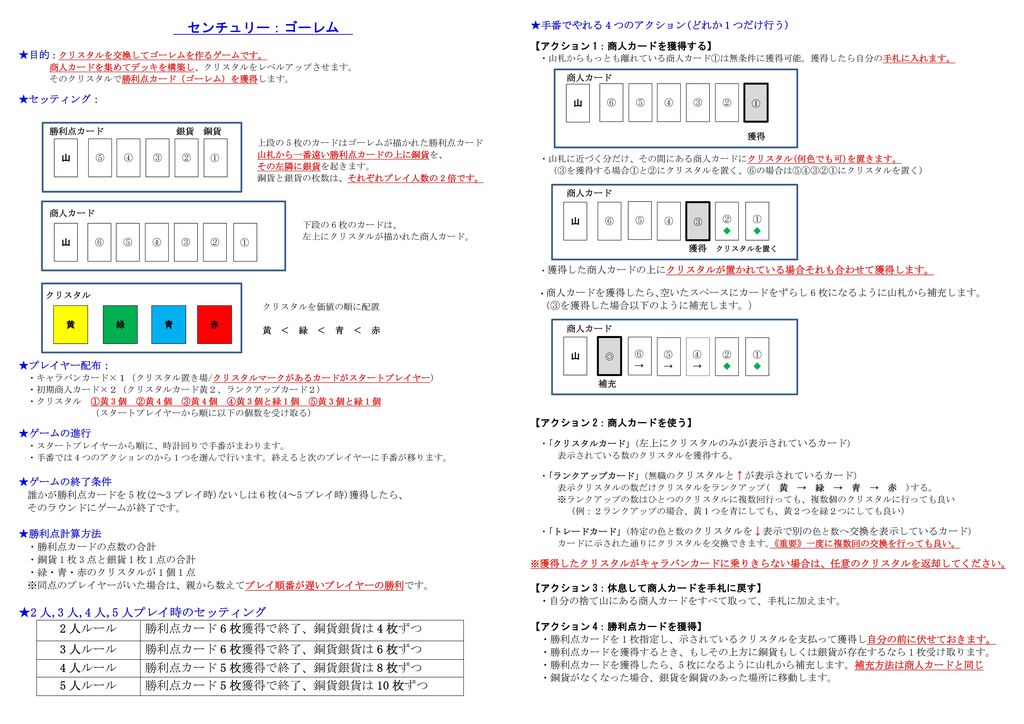 センチュリー:ゴーレムバタやんさんのルール/インスト