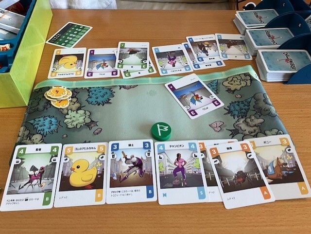 ルールは簡単でとっても盛り上がるのだが、人数に応じたセットアップが少々面倒かもね。あとは場所がある程度必要で、うちのテーブルはモノが散在しているので少し整理必要なのが億劫。