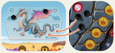 ブラッククリスタルによってドラゴンタイルのいずれかがパワーが0以下の場合は、獲得したばかりのゴールドをパワーが最も低いドラゴンタイルに配置する必要があります。