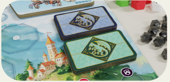 2. 3つのトーナメントカードデッキをタイプ(ファイアブレス、フライト、テールウィールディング)ごとに別々にシャッフルし、各デッキから1枚ずつのカードを公開し、ゲームボードの下部に表向きに置きます。これらは公開トーナメントです:トーナメントフェーズ中にプレイされるのはそのうちの1つまたは2つだけで、残りのトーナメントは個人の手札の中からプレイヤーによって選ばれます。