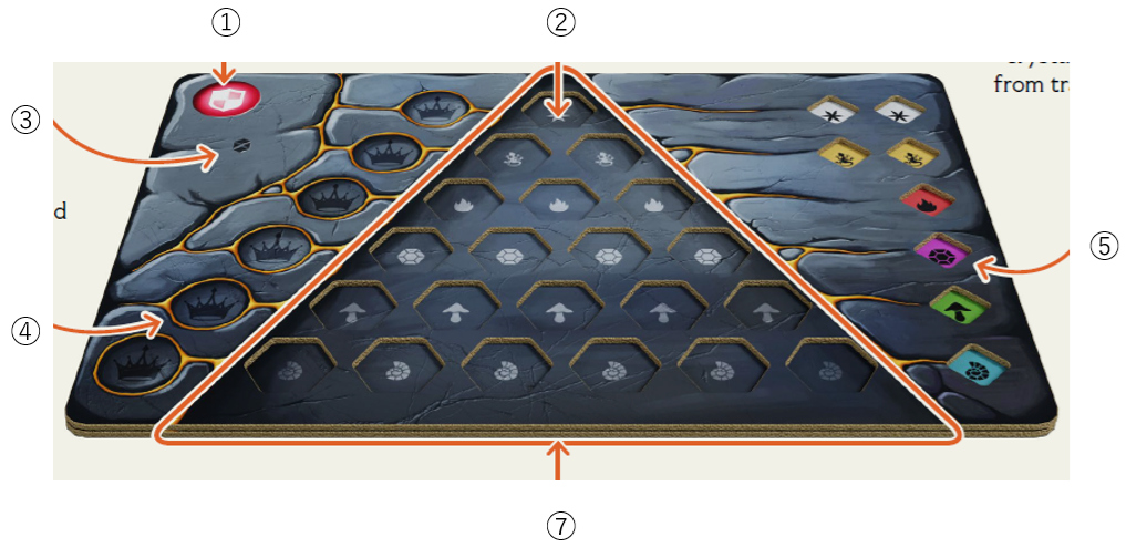 エレメントピラミッドに割り当てたダイスからブラッククリスタルを獲得する必要がある場合(ダイスにブラッククリスタルのアイコンが描かれている場合も、魔法のタイルを配置できない場合も)、エレメンタルボードの上部にあるブラッククリスタル置き場にそれを置きます。