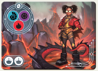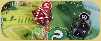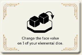 10. ファーストプレイヤーをランダムに決定します。このプレイヤーは、アクティブプレイヤーマーカーと7つのエレメンタルダイスを受け取ります。