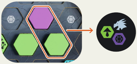 エレメントピラミッドにダイスを割り当てた場合は、描かれている種類の魔法のタイルを取り、ピラミッド上の対応するアイコンが付いた空きスロットにそれらを表向きに置きます。