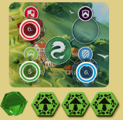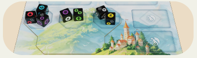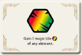 • エレメントピラミッドに1つのダイスを割り当てた場合、描かれている魔法のタイルをサプライから取ってエレメンタルボードに置きます。