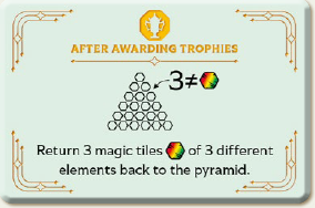 重要:配置する必要のある魔法のタイル用の空きスロットがピラミッドにない場合は、配置できない魔法のタイルごとに1つのブラッククリスタルを獲得する必要があります。