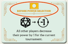 9. 各タイプのランダムなトーナメントカード1枚ずつ(裏向きに配置):ファイアブレス、フライト、テールウィールディング)。プレイヤーはいつでも自分の3枚の個人トーナメントカードを見ることができます。もし個人トーナメントの初期セットが気に入らない場合は、それらをすべて捨てて山に戻してシャッフルし、再び各タイプのカードを1枚ずつ引き直すことができます。この交換は一度だけ実行できます。