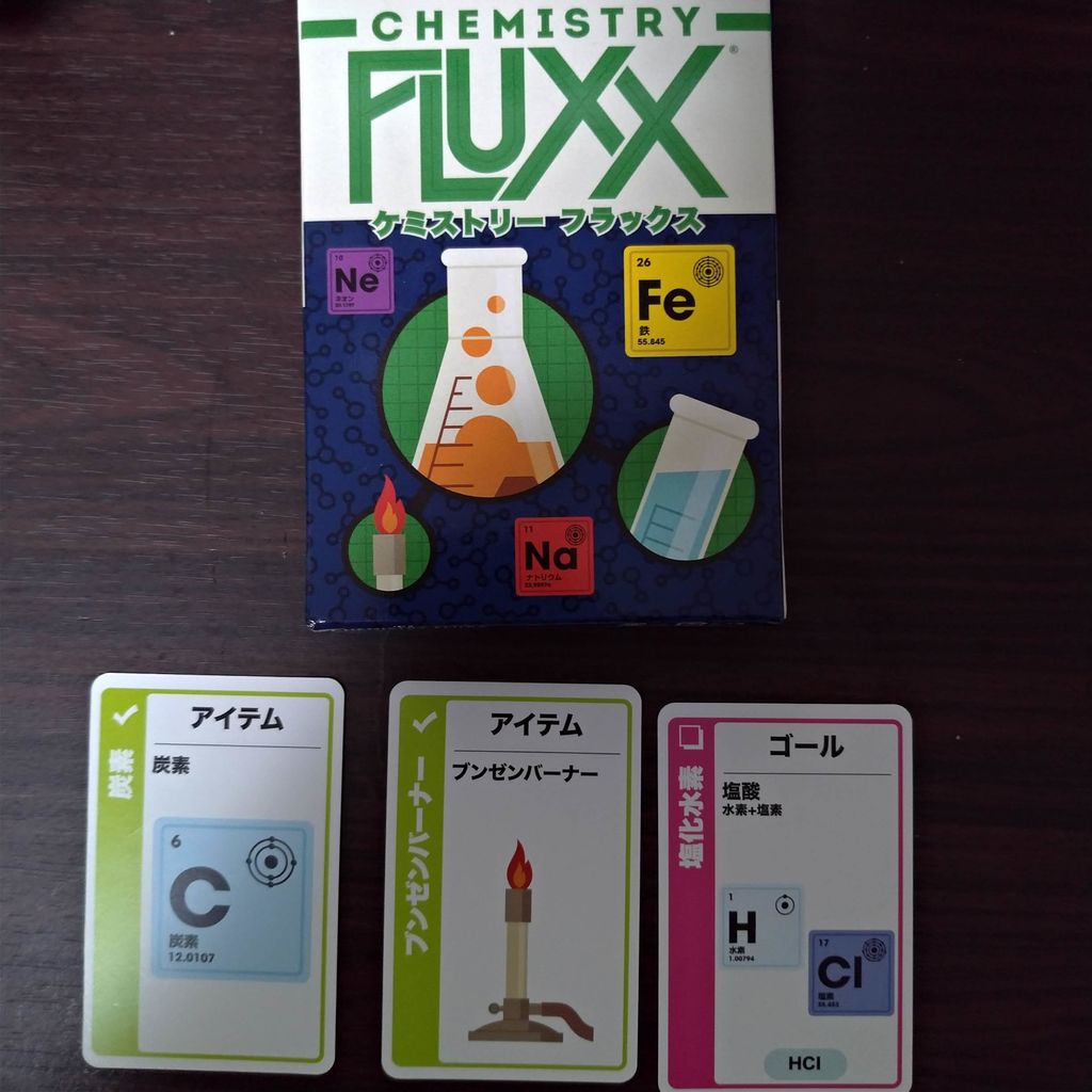 FLUXXの化学バージョンです。ルールに大きな違いはありません。中学生の長女に遊びながら化学の勉強ができなかと思って買いました。化学の勉強という観点から書きます。