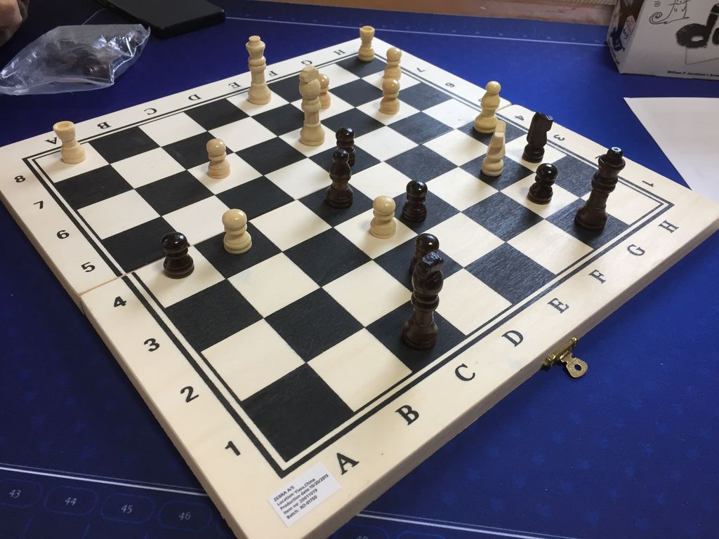 8x8の盤にポーン、ルーク、ナイト、ビショップ、クイーン、キングのコマを使って、相手のキングを取るゲームです(他に勝利条件あったと思うけど忘れました)