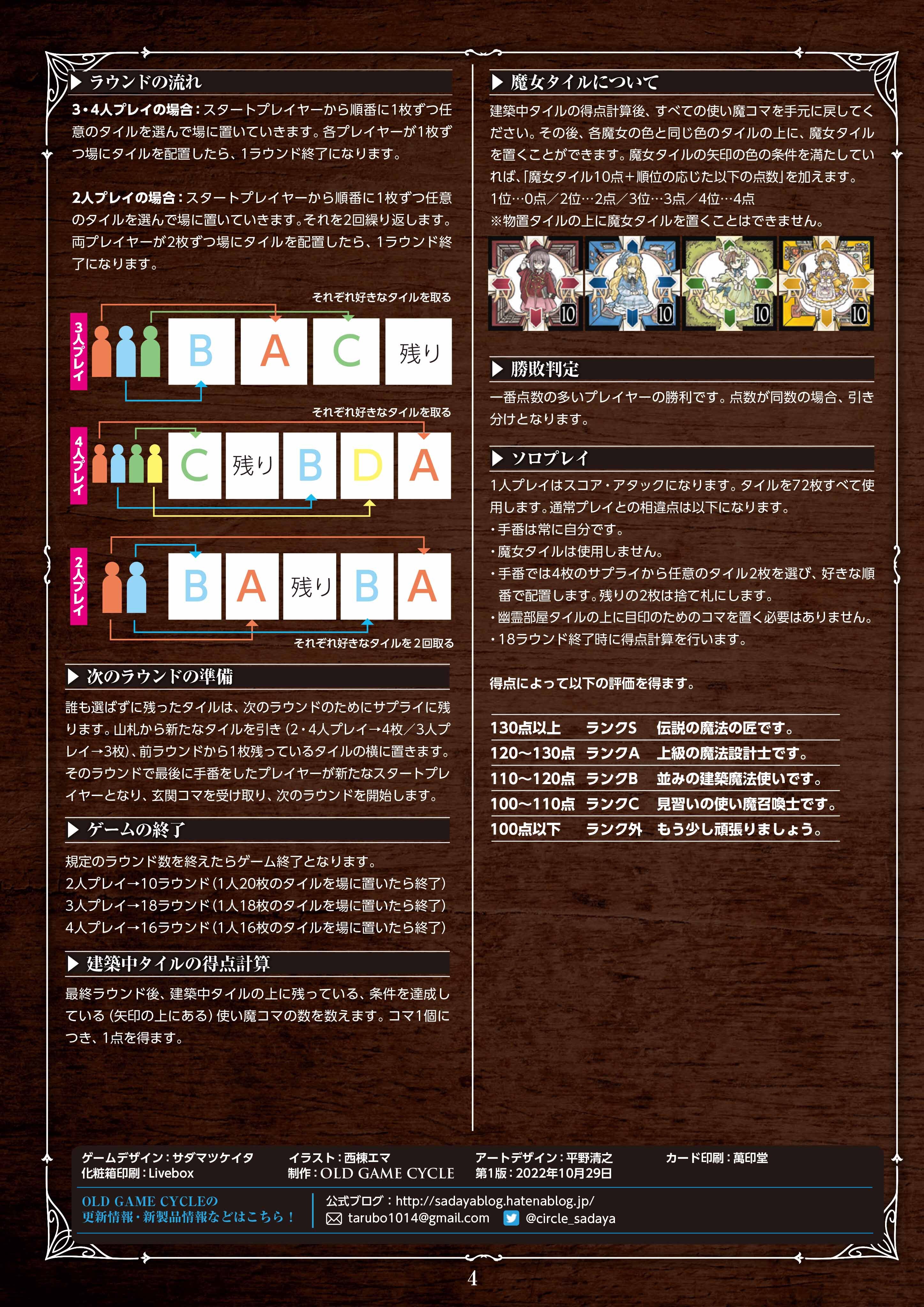 チェスター~四姉妹と魔法の家~OLD GAME CYCLEさんのルール/インスト