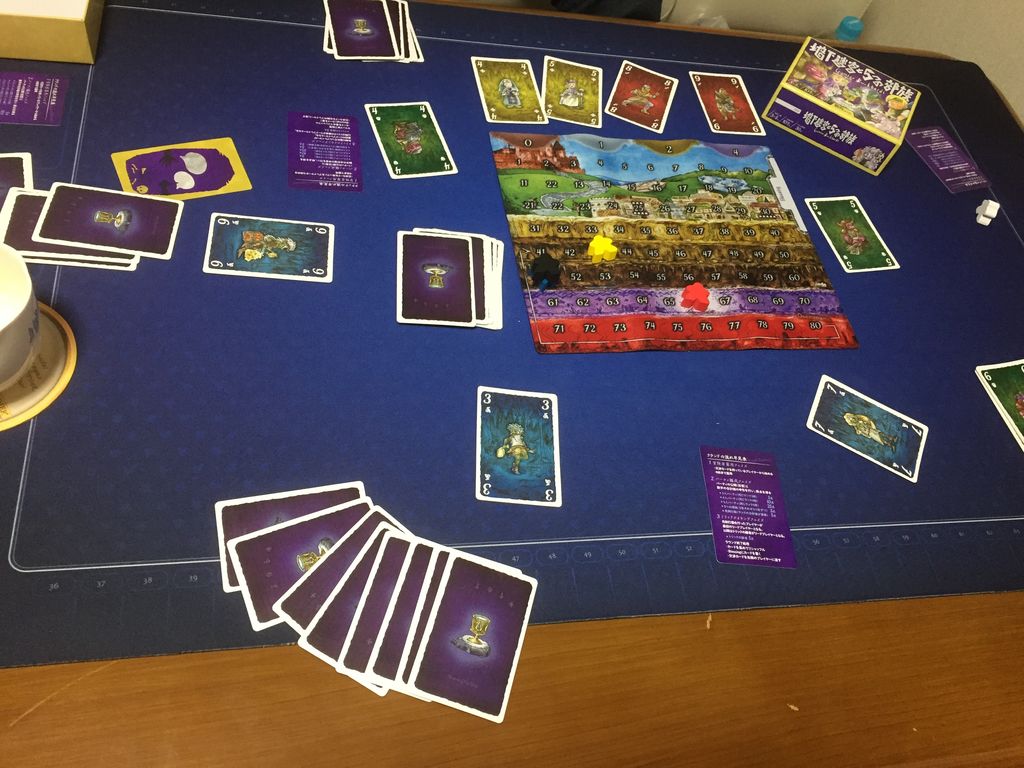 カード取得から競り(のようなもの)をさせるトリックテイキングゲームです。しかも最後勝つには勝ちすぎてはいけないという制限がついているため、いつも気が抜けません。
