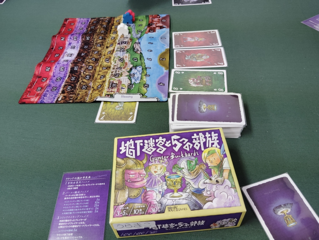 地下迷宮に眠る聖杯を手に入れるために、パーティー編成をしてからダンジョンに潜るトリックテイキングゲーム。