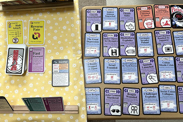 32枚のタイムラインカードには様々な歴史的な出来事が書かれている。