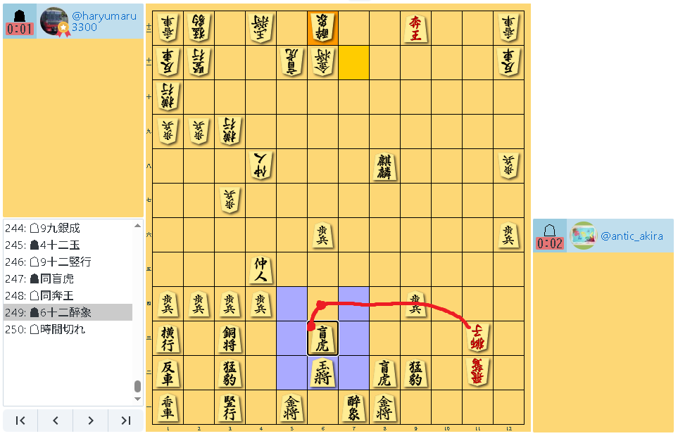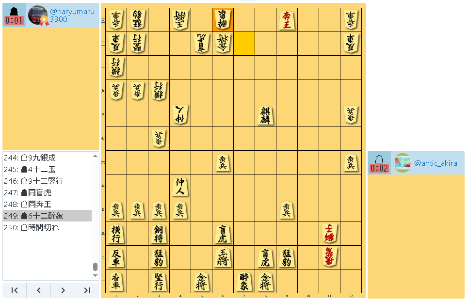 そこで鳳凰(成って奔王)と横行を相討ちさせ麒麟が獅子に成る作戦でしたが…