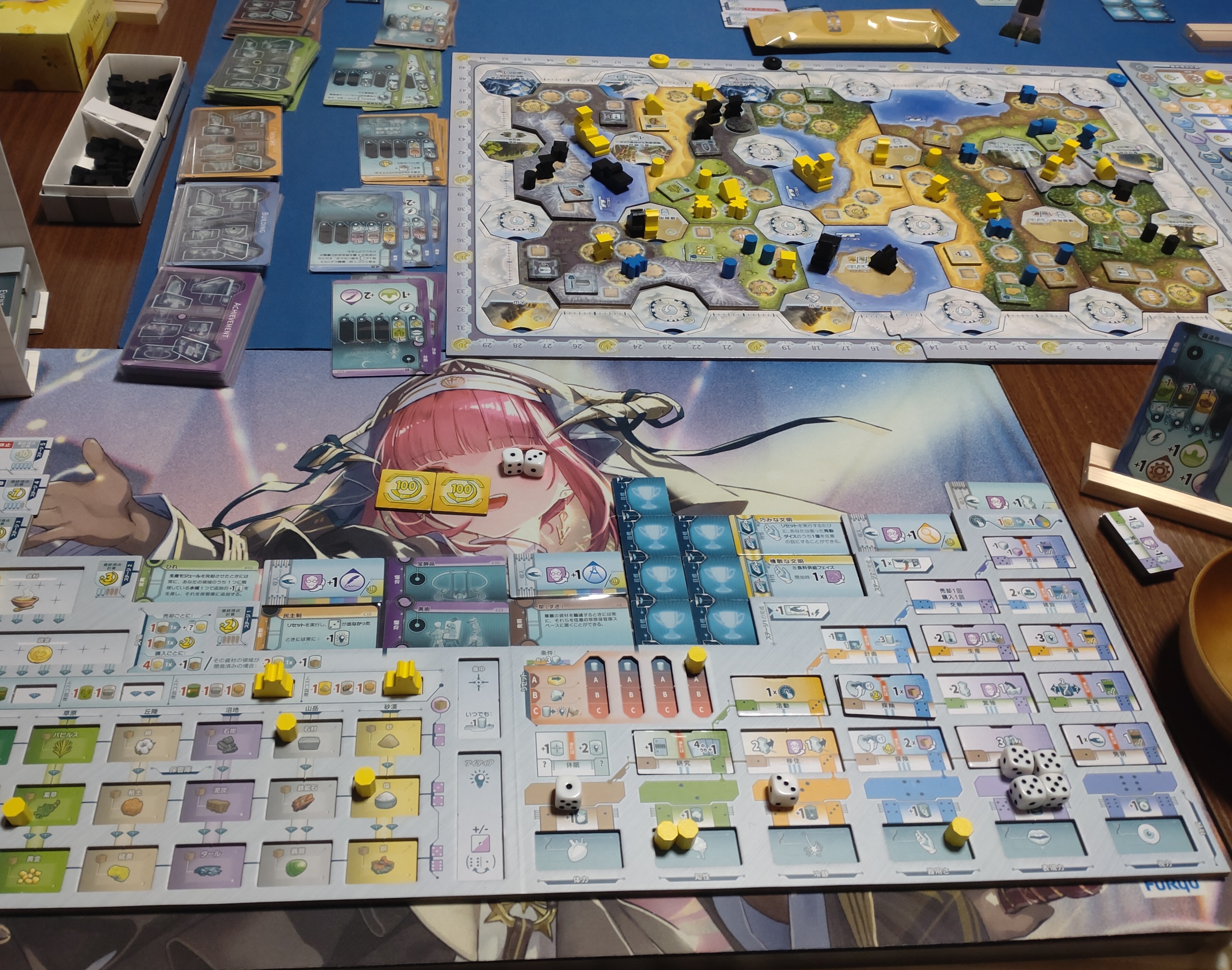 ・ダイスの出目が悪い時は【計画(3-4)】をして計画マーカーとしてダイスを増やす方が良いと思いました(それがゲームバランスや時間を考えた時に問題があるので、ソロプレイ時の感想で追記しています)
