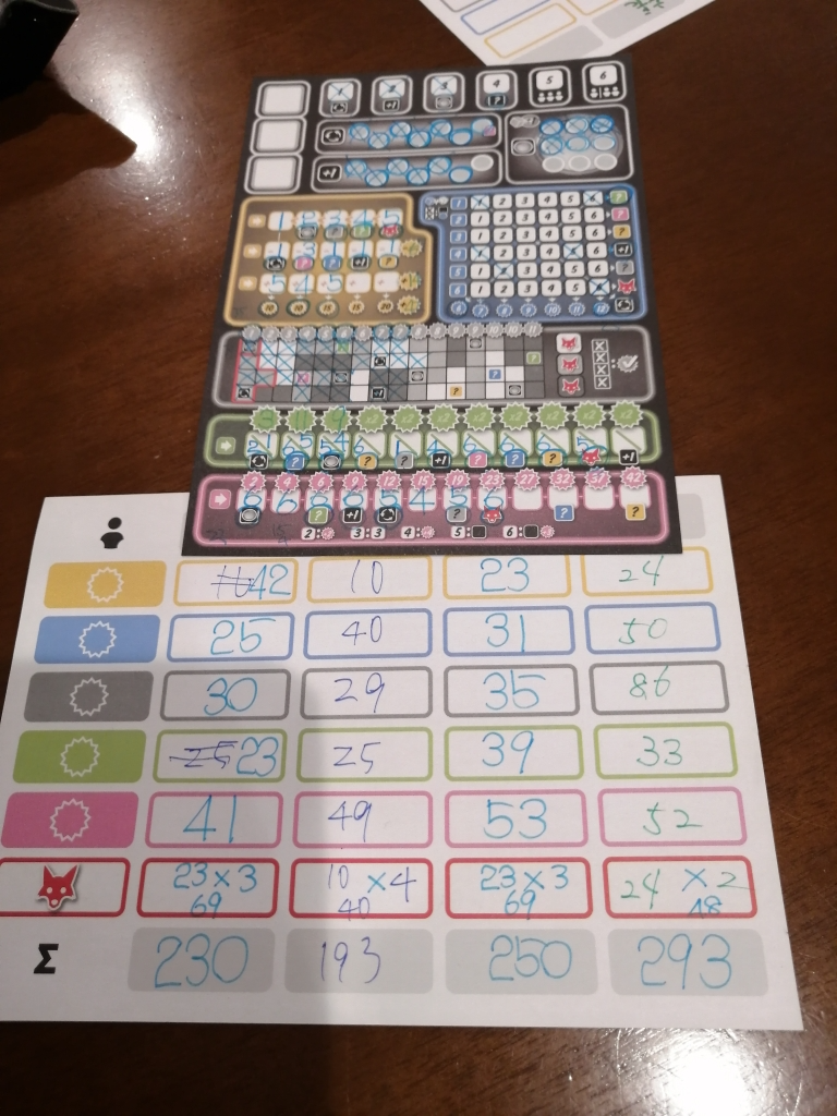 黄色は昇順、好きな数字(マイナス、プラス)で記入できて、2列目は数字がそのまま失点になるがコンボの要になっている。