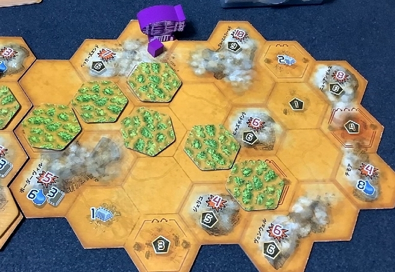 そしてボード上の都市に移動しないといけないのだが、都市圏内で必ず止まらなければならず、それ以外のところで移動を終えることができない。