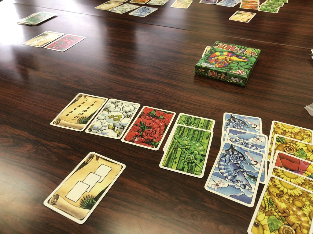 枚数が多い方が得点高いルールでのプレイ。2枚で引き取ることが多かったので結局取れた総枚数が少なかった。点数は伸びず。