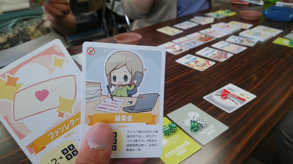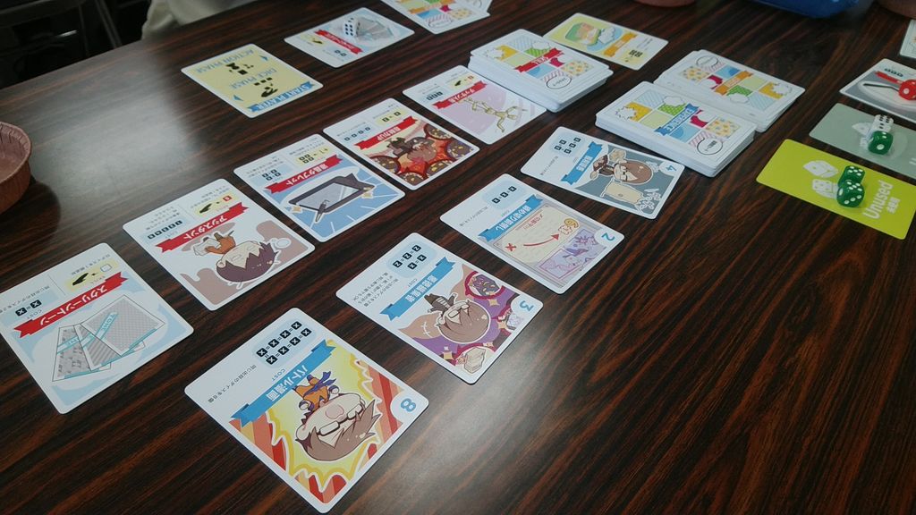 得点(経験)と能力(スキル)のカードが完全に独立しているので、ダイスを増やす→能力を増やす→ゾロ目を出す、の一本道だけではなく、序盤からコツコツ稼いでいくなど、様々なプレイングができる。初めての人や慣れていない人でも、徐々に進歩している実感が持てるのは、とてもよい所ではないだろうか。
