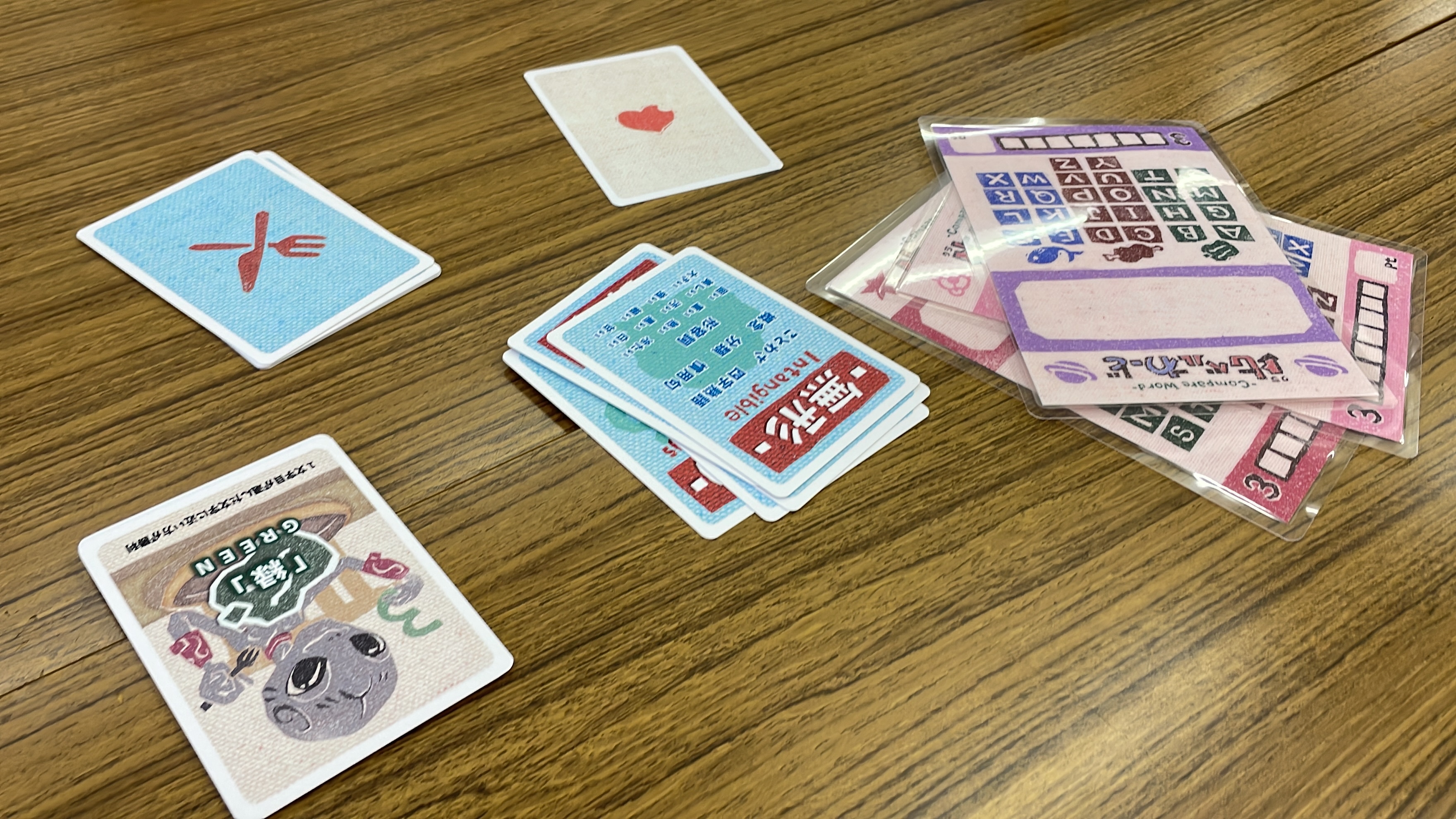 お題が出た後、それにある言葉をいち早く考えて、シートの書くゲームです。勝敗の決め方が独特で、「画数」や「文字が近い」などがあり、傍から見てもよくわからないって言われがちかもです。