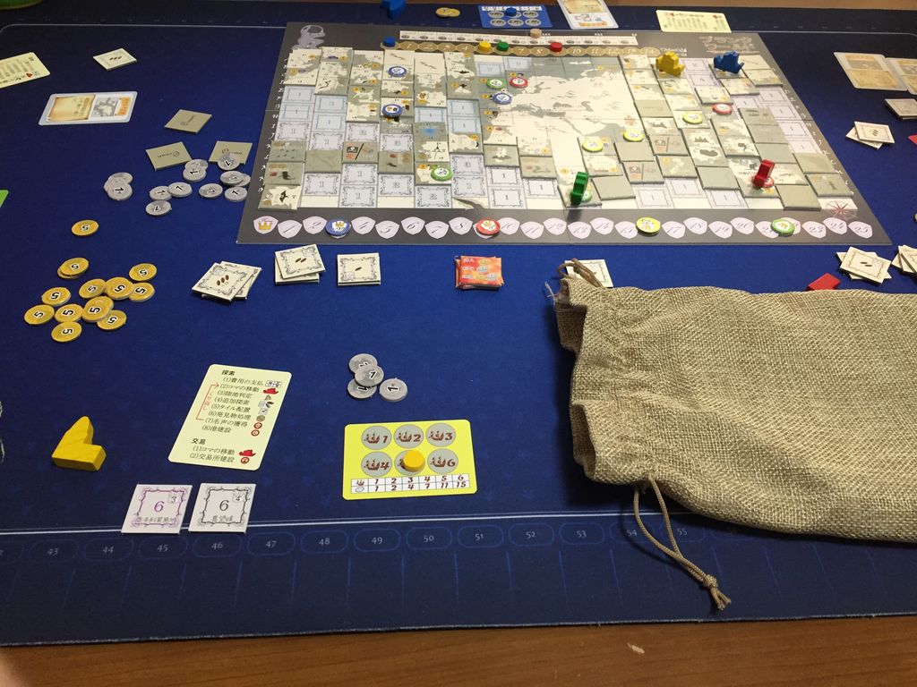 世界を探検しつつ、地図を埋めつつ、交易と特産品を見つけるゲームです。大航海時代というデジタルゲームがあるのですが、それらをアナログゲームに落とし込んだ感じがあります。