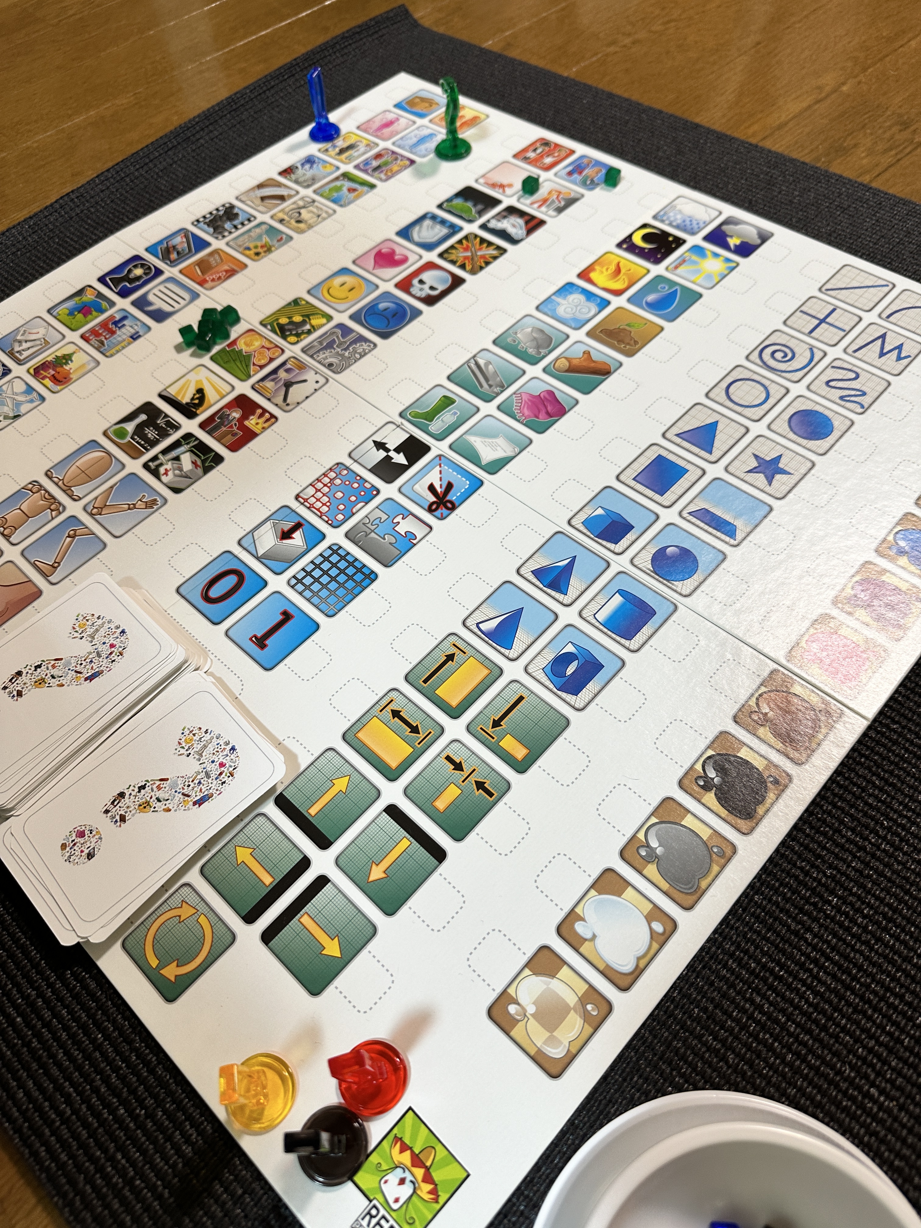 ボードに描かれている沢山のアイコン(イラスト)の中からお題に関連するものにコマを置いていき、それだけでお題の言葉を当ててもらうというコミュニケーションゲームです。難しいけどとても楽しい。