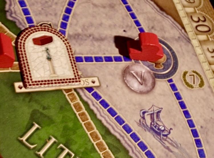 選んだ資源タイルを裏向き (お金面)にし属州に置く