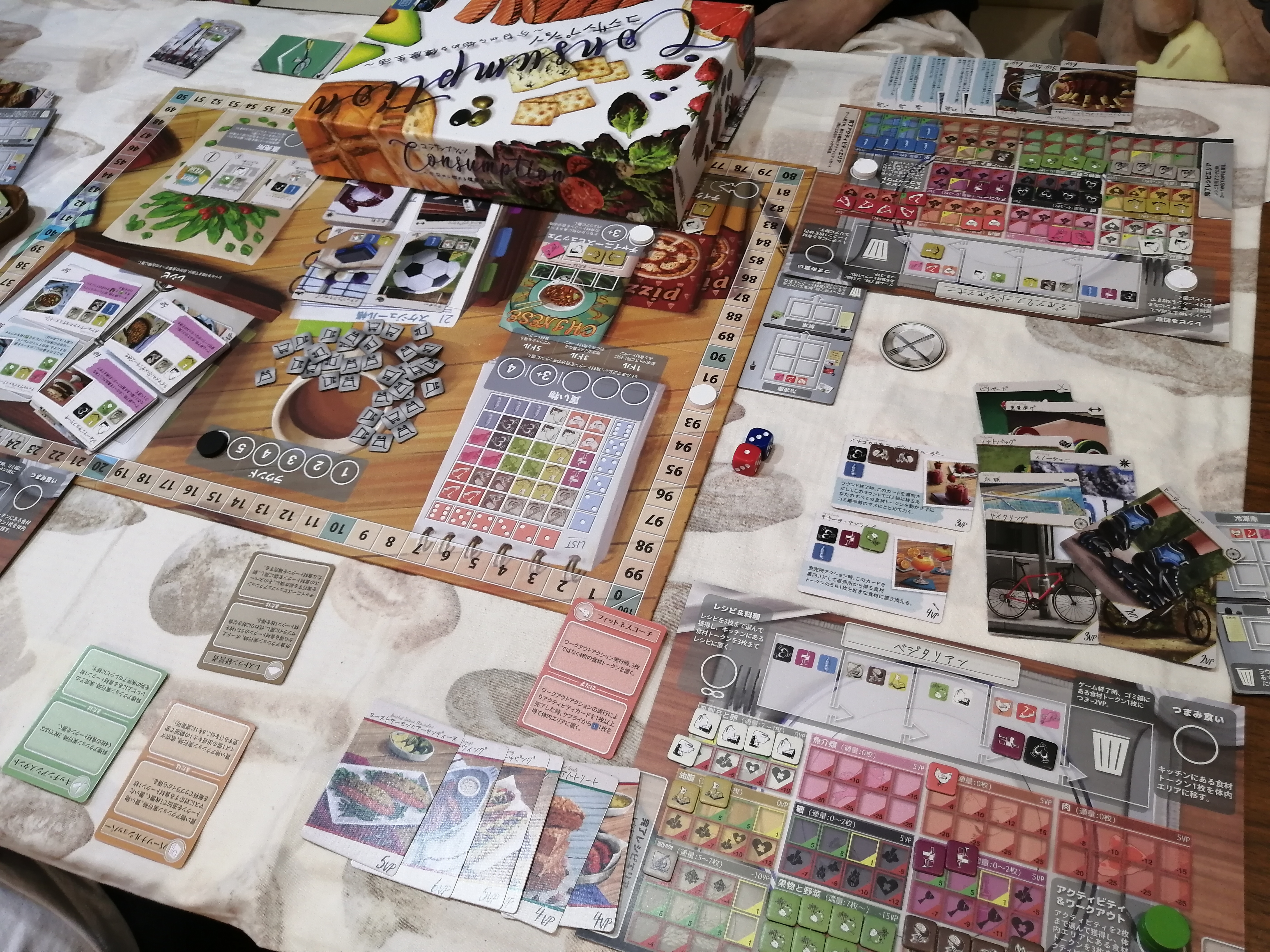 食べて飲んで運動して健康生活を送ることを目指すワーカープレイスメントゲーム。