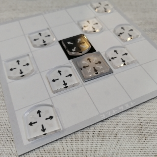 自分のアクリルコマを先に反対側に送ったら勝ち。
