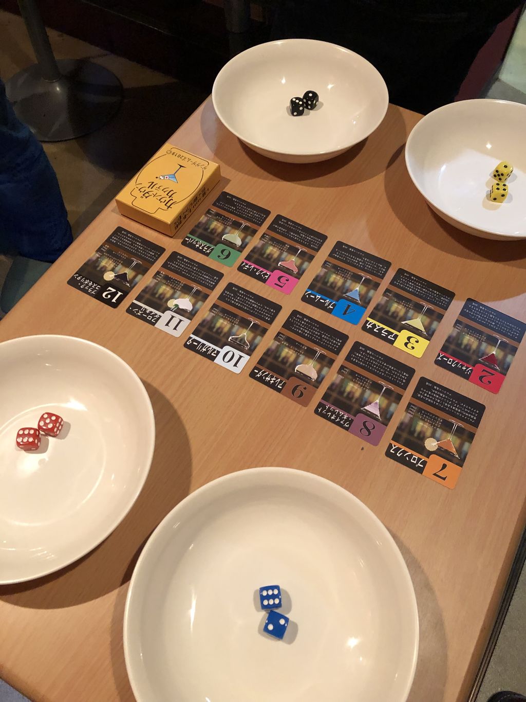 サイコロをふり、出目と同じ数字のカクテルをとるか・とらないか。基本的にはこれだけです。そこに「スピード」というアクション要素や「カウントダウン」というルールが加わり、「わかりやすくて面白い!」が生まれています。