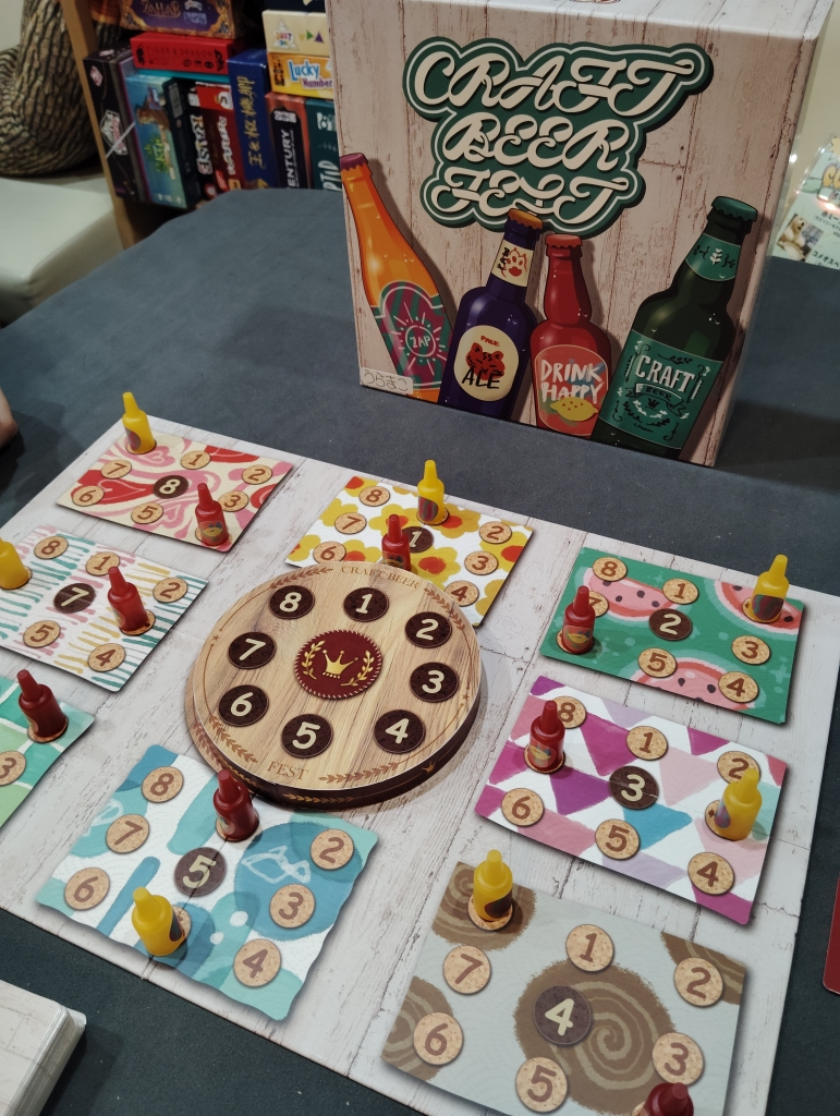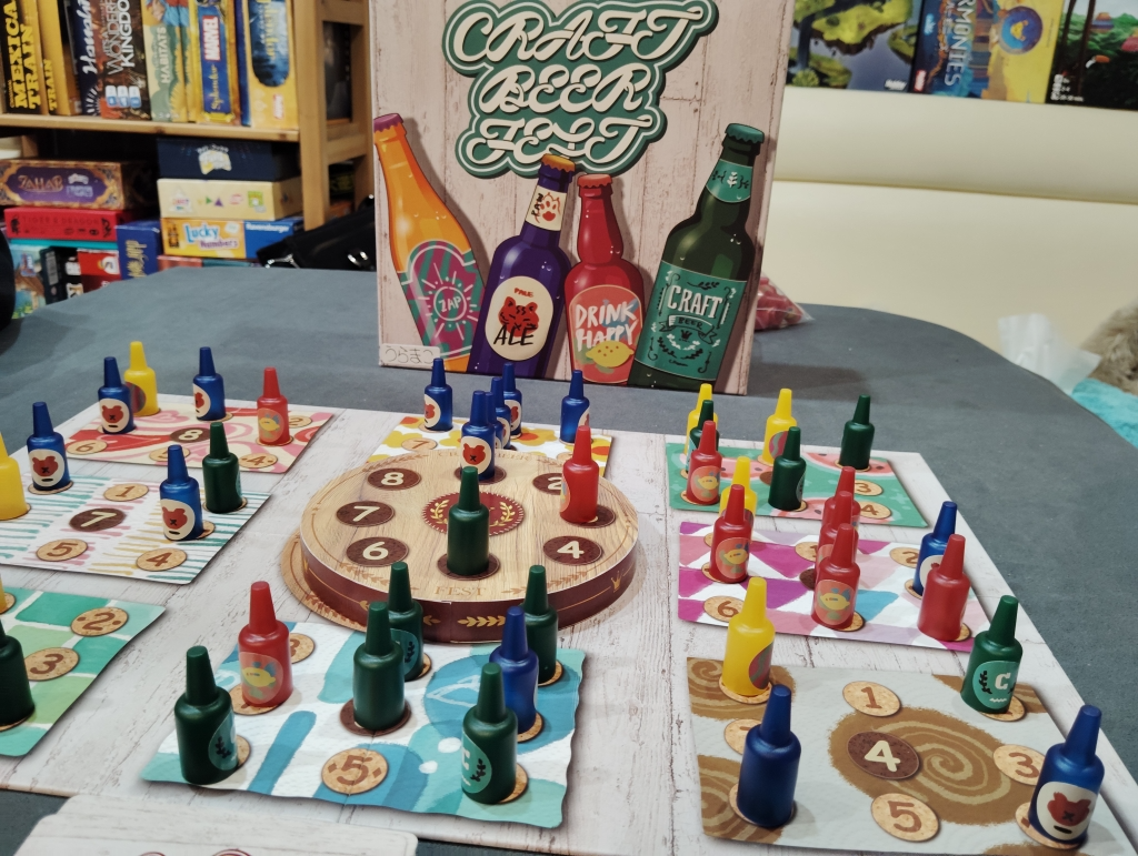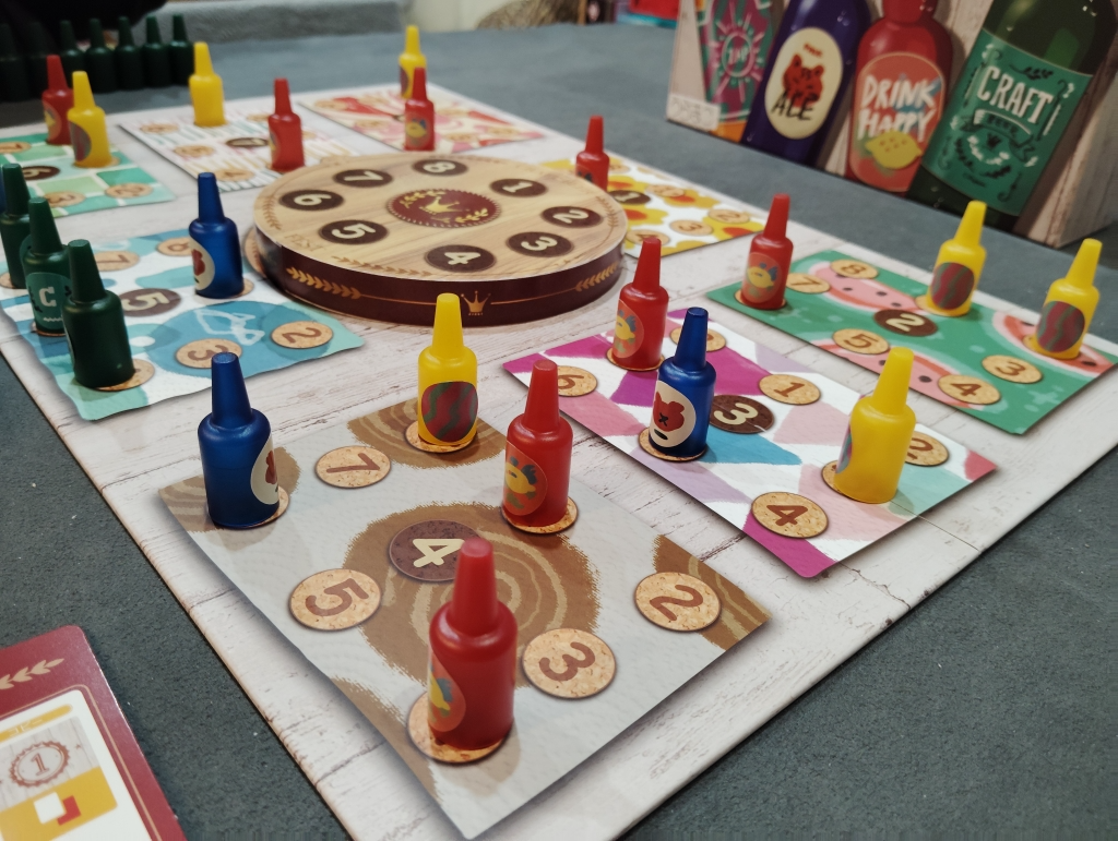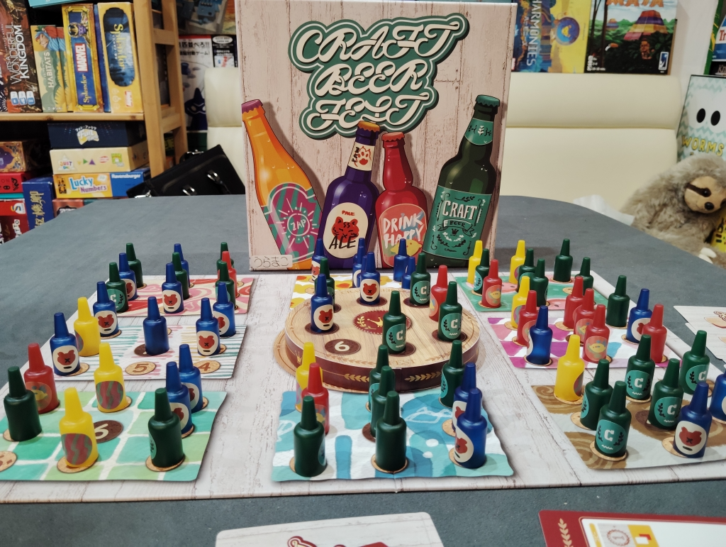 ビール瓶たちによるエリアマジョリティゲームで、ドンドンとビール瓶は増えていくのでボード上はお祭り騒ぎです。