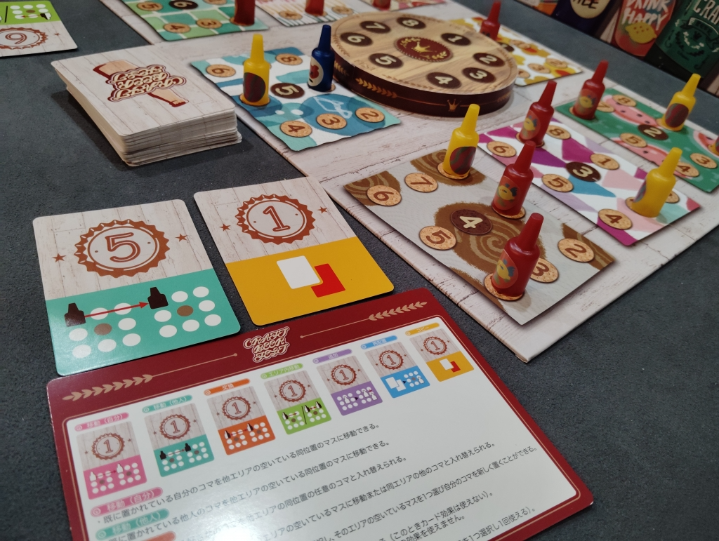 カード効果により追加でビール瓶を配置したりビール瓶をエリア内やエリア外に移動したり交換したりとがあります。