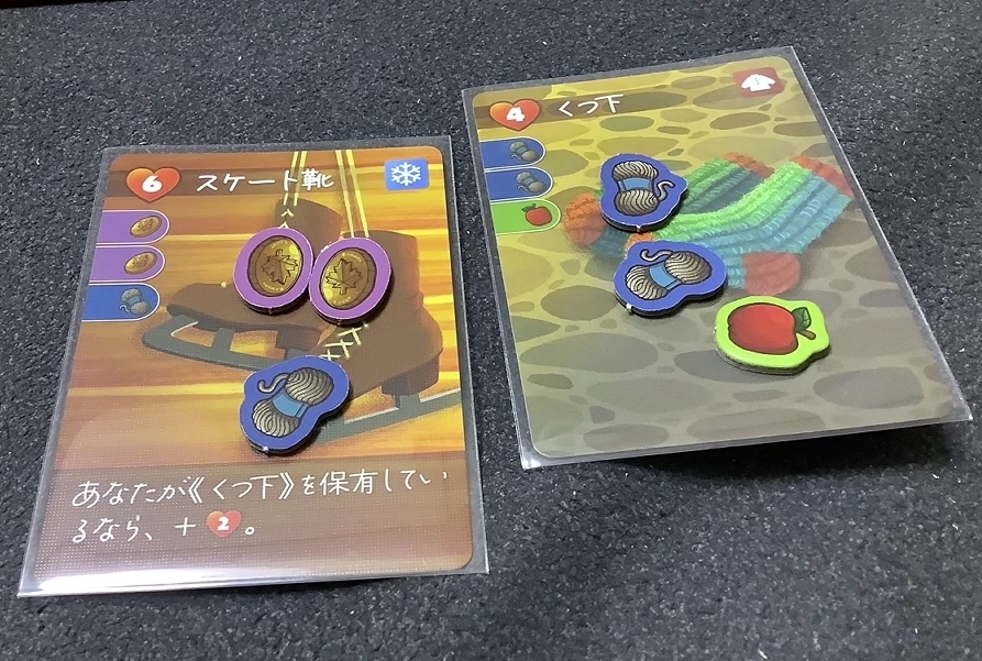 個人ボードの裏がこうなっており、最後にこれで点数を出せという配慮がうかがえます。一応お互い未完成の快適グッズ以外は公開情報なので点数は読めるのですが、最後にいろいろとあがくことができるので、このゲーム最後の最後まで分からいのかもしれません。
